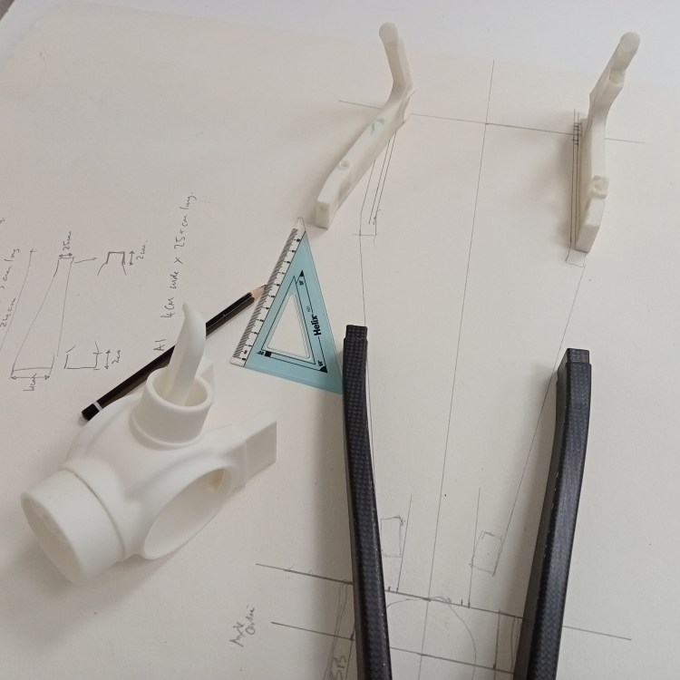 Low fidelity prototype dropout modelled in carbon fibre to check geometry and fit before further aesthetic styling of overall shape and style to a high fidelity prototype.